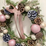 An enchanting Christmas holiday decoration that offers a modern twist, blending soft pink hues with natural elements and a frosty finish