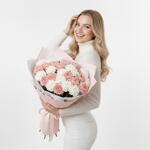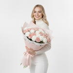 Ribbon - 1 pcs packaging - 1 pcs white dianthus - 15 pcs pink dianthus - 15 pcs
