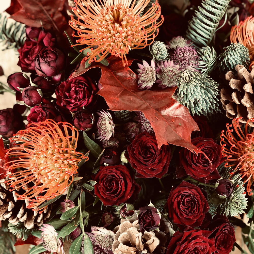 Astrantia - 4 pcs Spray rose - 3 pcs pine - 3 pcs pinecone - 4 pcs spider - 4 pcs