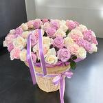 The Lily Basket is a graceful floral composition crafted for elegance and charm. Featuring a romantic palette of soft pink, creamy ivory, and delicate lilac roses, this hand-designed arrangement sits beautifully in a natural woven basket, tied with lavender satin ribbon. A stunning gift for birthdays, anniversaries, or welcoming a new baby, it brings gentle warmth and floral luxury to any setting. Care Instructions: Keep the arrangement in a cool, shaded area away from direct sunlight and drafts. Add a small amount of water to the floral foam every day to keep the roses fresh. Avoid placing the basket near ripening fruit, which can cause the flowers to wilt more quickly.