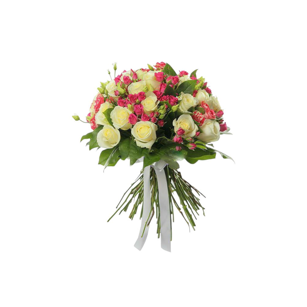 Pink rose - 10 pcs white rose 60 cm - 10 pcs greenary and packaging - 5 pcs