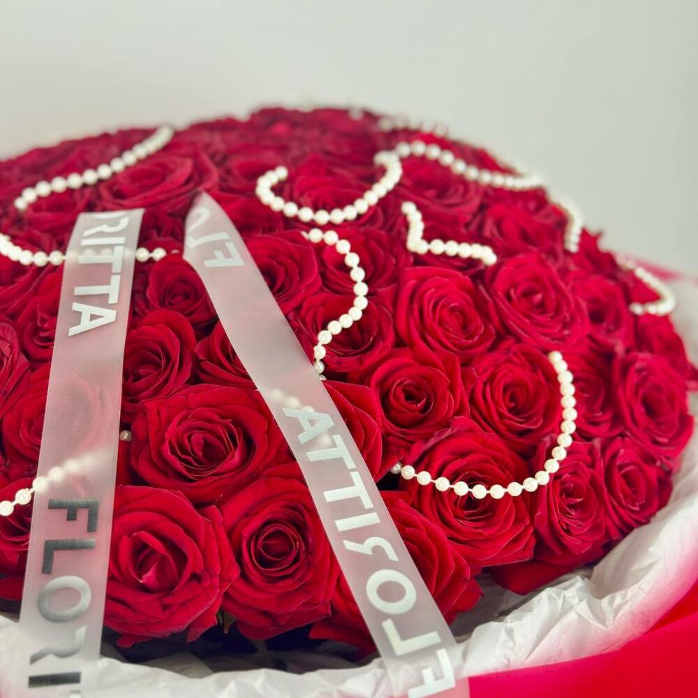 A breathtaking bouquet of 100 premium red roses — the ultimate expression of love, passion, and admiration. Each rose is hand-selected for its perfect bloom and deep crimson shade, creating a luxurious arrangement that speaks louder than words. Perfect for anniversaries, proposals, or any moment when only the grandest gesture will do