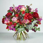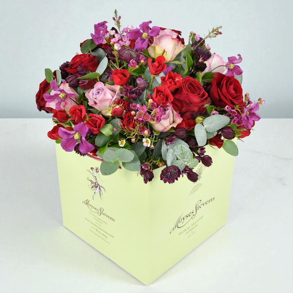 These are roses at their very best. Inspired by generations of Moyses Stevens florists, the Renaissance Rose is part of our legacy as one of the country’s leading floral designers. Each bouquet is carefully hand-tied by our florists and includes red and pink rose varieties, dazzling spray roses and an accompanying cast of clematis, wax flower, astrantia eucalyptus.p