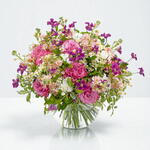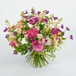 A bouquet that calls to mind summer days and clear blue skies. It’s evocative and redolent, a design which transports the viewer and brings into focus the magnificent power of flowers. With fresh daisies and pale pink roses, our favourite carnations and strong stems of alstroemeria, it’s an explosion of colour to rival any fireworks display