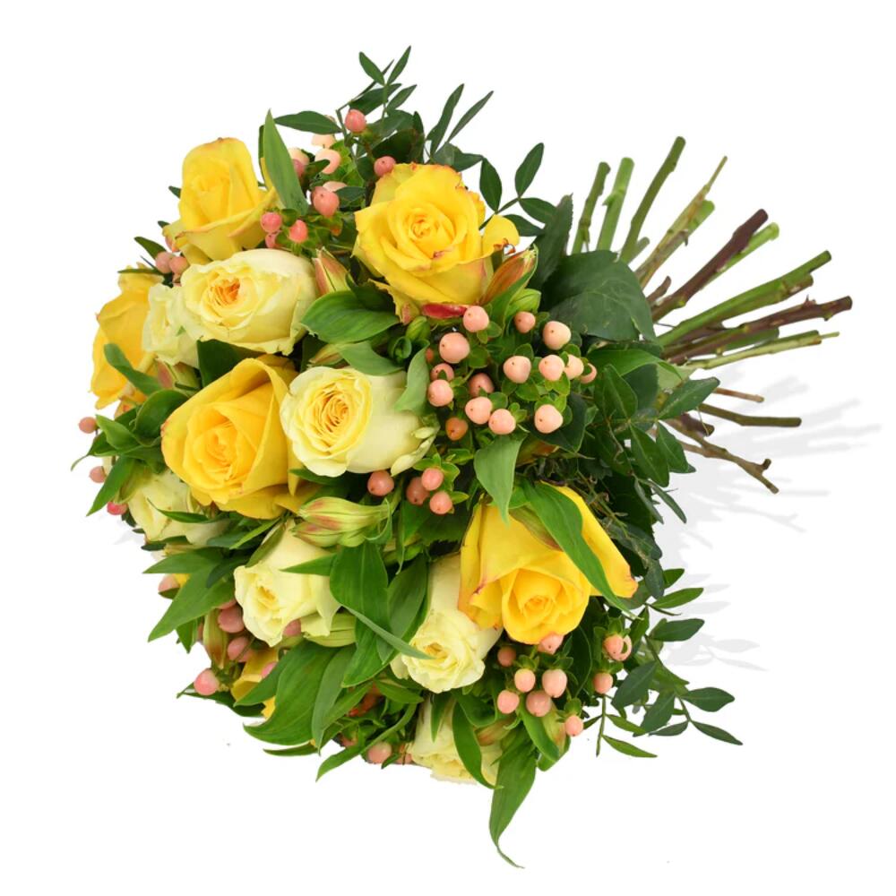 Yellow roses dominate this luscious, hand-made bouquet. They’re some of our most popular and enduring blooms and we use them whenever we can. If they’re your favourites as well, why not treat yourself today?